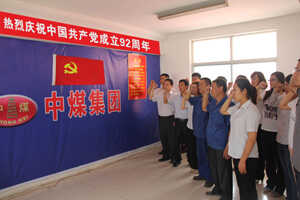 为了进一步加强集团员工中党员对党的性质、宗旨和荣辱观的认识,增强、拥护党的领导的信心和决心,中煤集团部分党员代表一同学习党章,在党旗下宣誓;并进行了党员基础知识题目测试,与此同时还有一部分战斗在生产一线的党员同志在自己的工作岗位上尽职尽责挥洒汗水;最后会议在党员代表合唱《没有共产党就没有新中国》的歌声中结束。